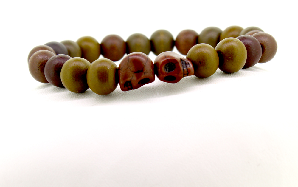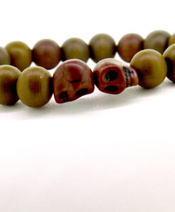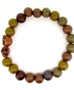 YONGZHENG auch hier ist weniger mehr. Schlichte Holzperlen in olivgrün und Braun-Tönen mit zwei schlichten braunen Totenköpfen aus Holz. Das Armband läßt sich sehr angenehm tragen und ist vielseitig mit anderen Perlenarmbänder kombinierbar – läßt sich aber auch alleine sehr gut tragen!